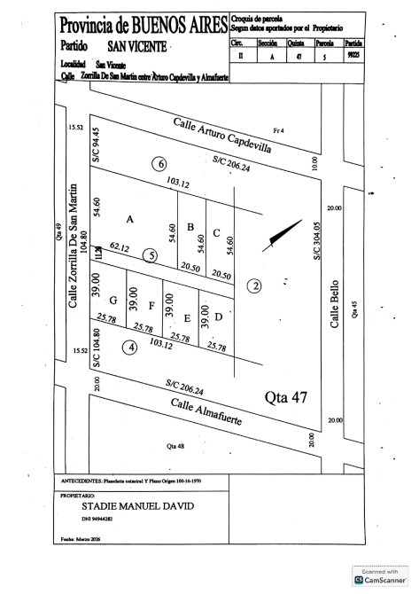 UBICACION: Calle Zorrilla de San Martin entre Arturo Capdevilla y Almafuerte, San Vicente. Zona "El Pampero"